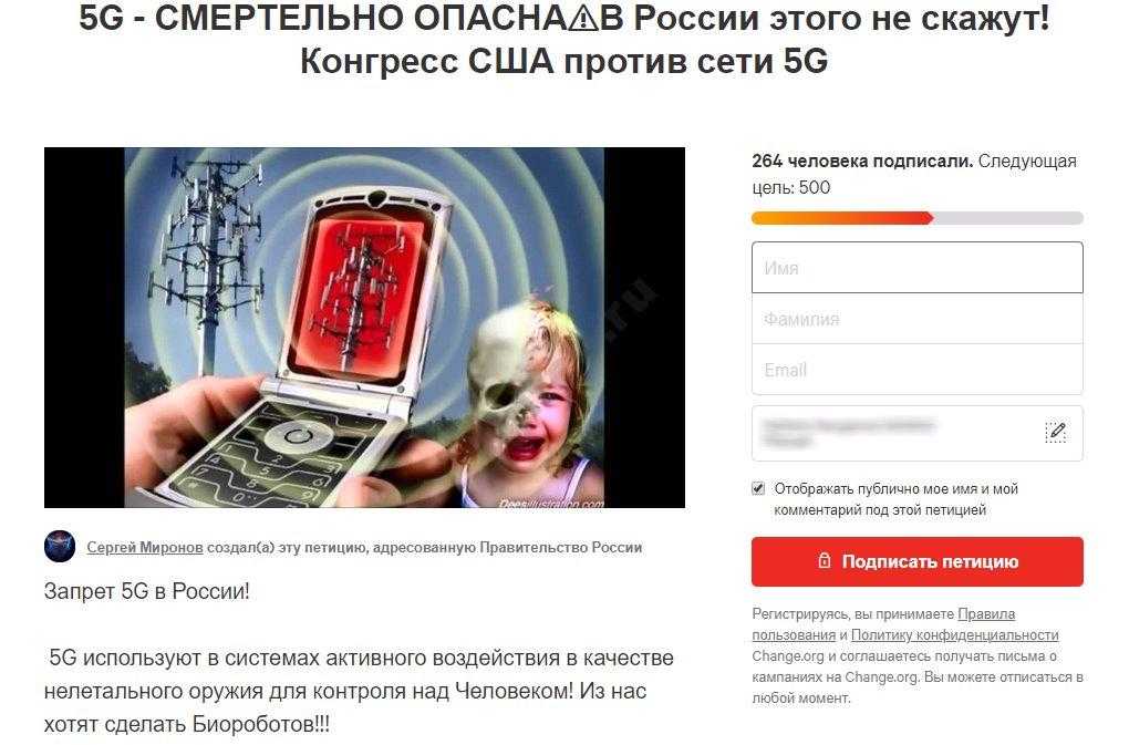 Найти петиции против 5G технологий можно в интернете – представлено несколько десятков обращений как на русских, так и на англоязычных сайтах. Неравнодушные люди собирают подписи и призывают прекратить распространение нового стандарта.