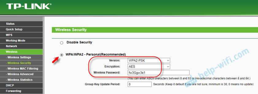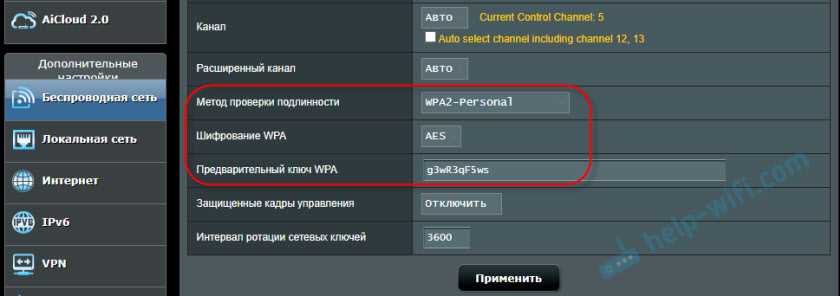 Используйте WPA2 — Personal с шифрованием AES. На сегодняшний день, это лучший и самый безопасный способ. Вот так настройки защиты беспроводной сети выглядит на маршрутизаторах ASUS: