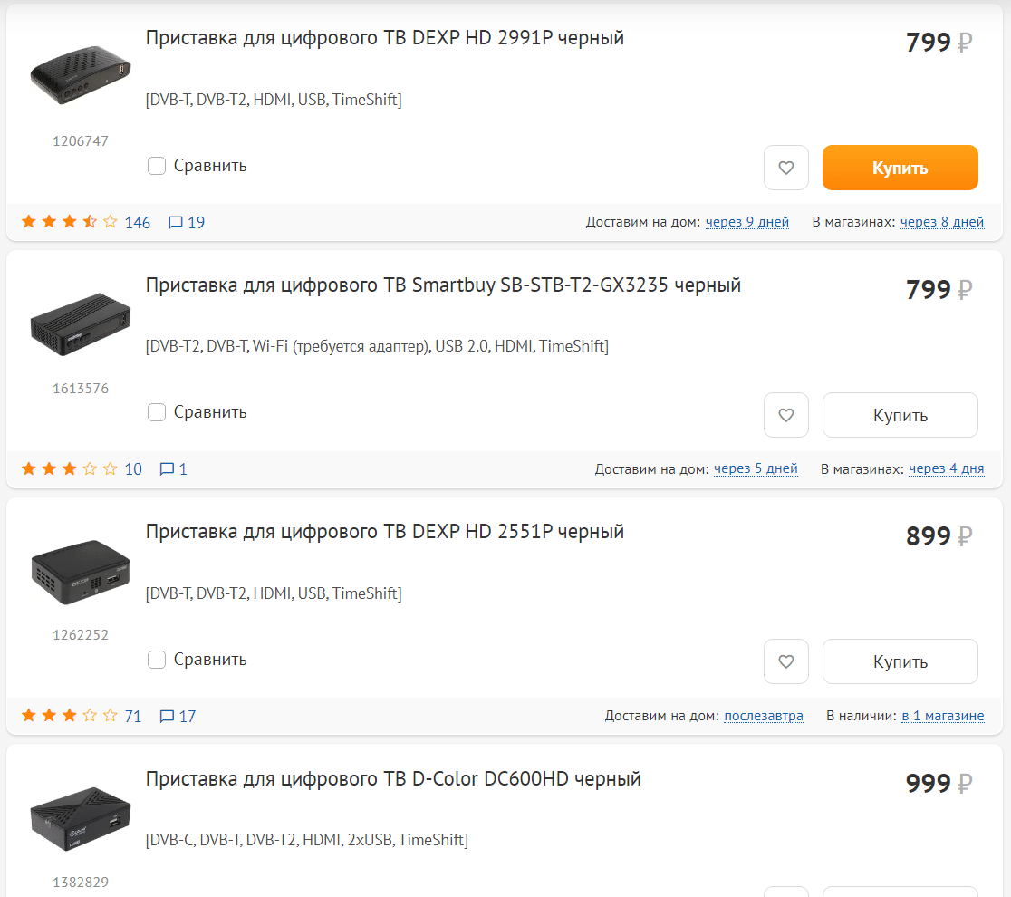 Цены на приставки достаточно доступные: самая дешевая в сетевом магазине техники будет стоить всего 800 рублей: