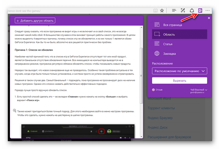 Клипперы будут полезны при необходимости быстро сохранить просматриваемую страницу или её фрагмент. Причём можно выбирать именно полезные области статьи без ненужной рекламы и панелей навигации. Сохраняться вырезки будут на сервере OneNote или Evernote (зависит от выбранного расширения).
