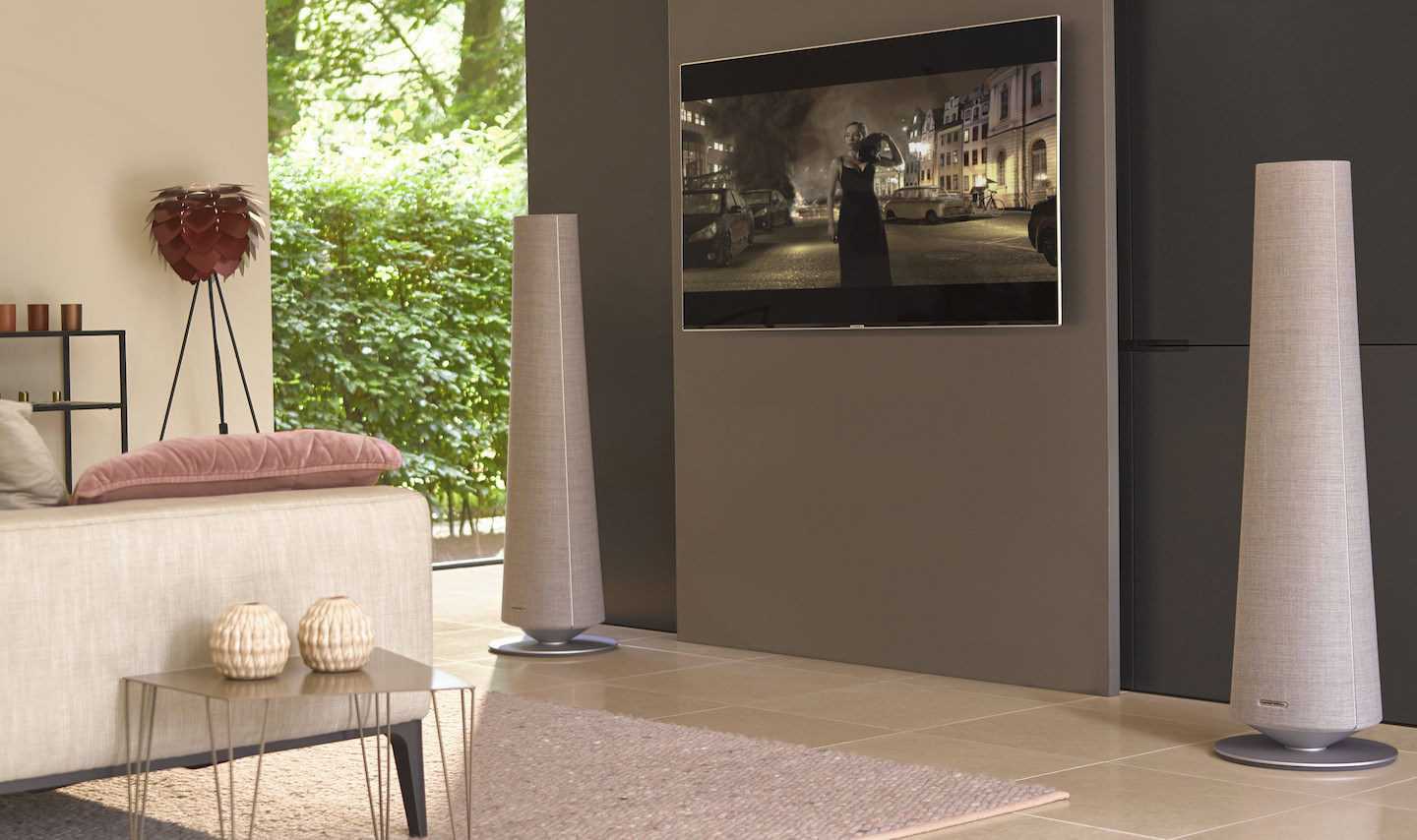 Простые и изящные формы тыловых колонок Surround позволяют им вписаться в любой элемент интерьера, хотя особенно эффектно они смотрятся на специальных стойках