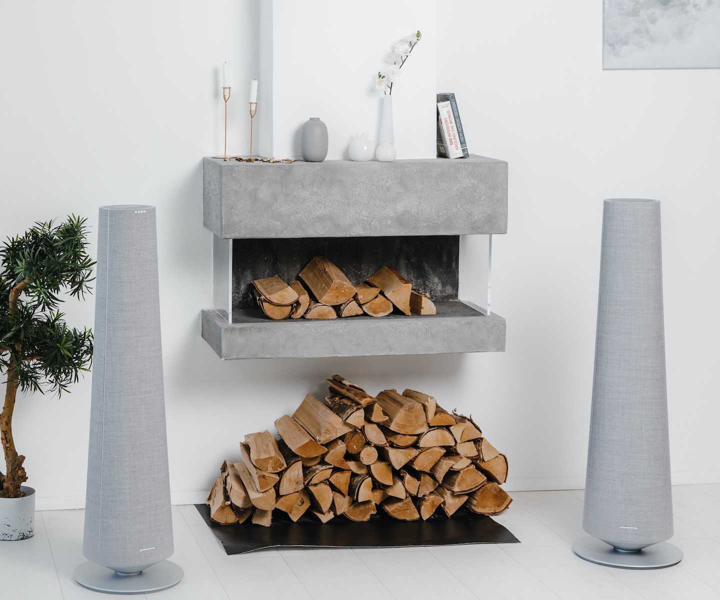 Линейка Citation покрыта специально произведенной акустической шерстяной тканью от датской текстильной компании Kvadrat, которая с 1968 года входит в число лидеров индустрии. К слову, одно из ее шести подразделений — Kvadrat Soft Cells — создает инженерные акустические панели. Вся серия предлагается в двух цветах: сером (нет — «благородном серо-серебристом») и черном. Но тоже не просто черном — этот цвет составлен из множества оттенков разных участков спектра, чтобы создать максимально приятный для глаз колер. Я честно помедитировал на одну из черных колонок и со стыдом признаюсь, что проникся не больше, чем родственным квадратом Малевича.