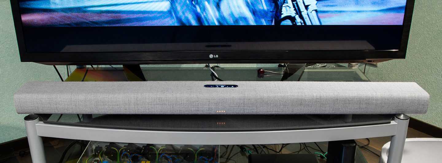 В одиночку Citation Bar способен воспроизводить кинозвук 3.0 — то есть работать за центральную и две фронтальные колонки, а также проигрывать стереомузыку. Имейте в виду, что ограничиться этим вариантом — значит получить отдачу только за малую часть вложенных в саундбар денег. Я не спорю, играет панель гораздо лучше встроенной акустики телевизора, но в режиме «соло» она заметно уступит специализированному 240-ваттному саундбару Harman Kardon Enchant 1300, у которого 13 встроенных динамиков способны создать правдоподобное виртуальное 5.1 звучание (существует и младшая 180-Вт версия Enchant 800 с восемью динамиками).