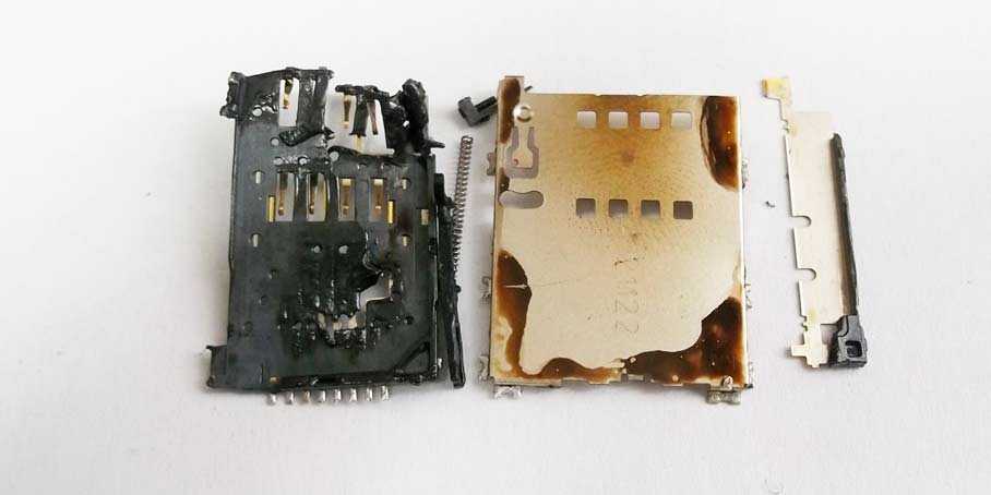 Частая смена карточек, попадание воды, песка, механическая деформация из-за падения, окисление – лишь немногие причины поломки слота для установки симок. При выявлении такой проблемы рекомендуется обратиться в сервисный центр, где мастер разберёт телефон (часто для снятия, перепайки разъёма требуется полная разборка устройства), перепаяет слот.