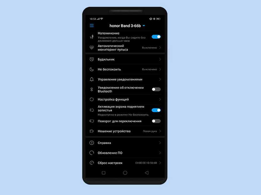 - Настройка функций браслета.