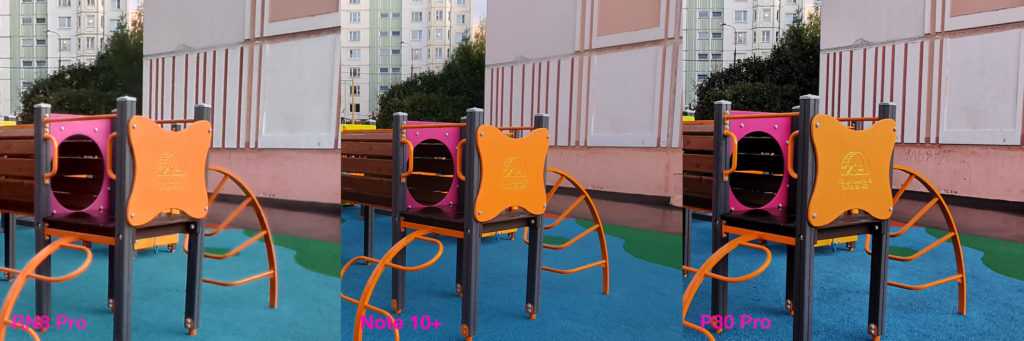 Тут смотрим на отражения в стёклах домов и на листву. У Samsung это настоящая живопись, а не фотография. Более-менее получилось отобразить дерево у Huawei, но всё равно не так хорошо, как у Redmi. Мощь!