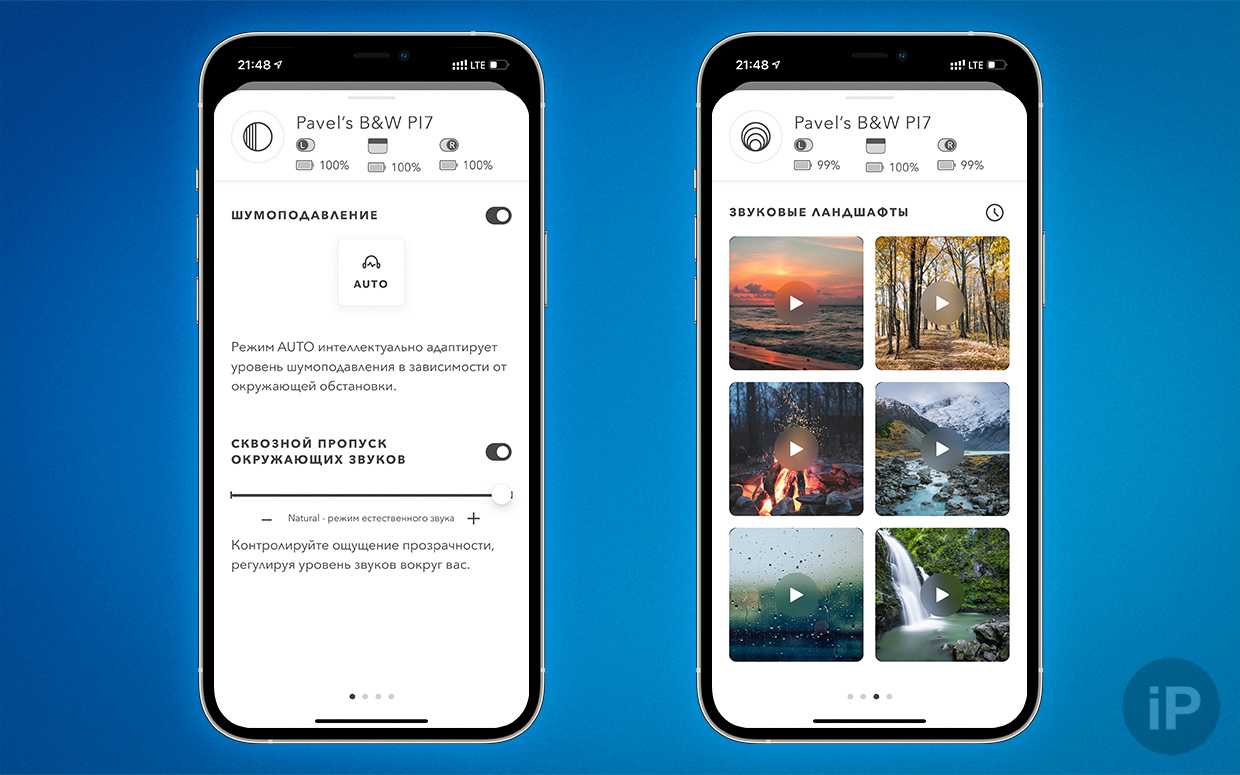 Вывод: Приложение от Bowers & Wilkins PI7 присутствует на iOS и Android, позволяет управлять степенью шумоподавления и менять настройки. С AirPods Pro всё это тоже можно делать, мне только на уровне iOS-системы, в Android ни приложения, ни поддержки нет. Поэтому в качестве универсальных наушников гарнитуру от Apple рекомендовать невозможно.