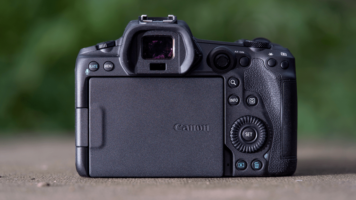 Задняя часть забита кнопками. Кнопки Rate и Меню находятся в верхнем левом углу, рядом с электронным видоискателем и дисплеем с переменным углом наклона. Восьмисторонний джойстик для управления автофокусом и кнопка AF-ON выстроены в один ряд, справа от видоискателя. Они заменяют сенсорную многофункциональную полосу, использованную в первой полнокадровой беззеркальной модели Canon, EOS R, поверхность управления, которая была более громоздкой в использовании, чем полезной; Я рад видеть, что Canon применяет здесь более традиционный подход.