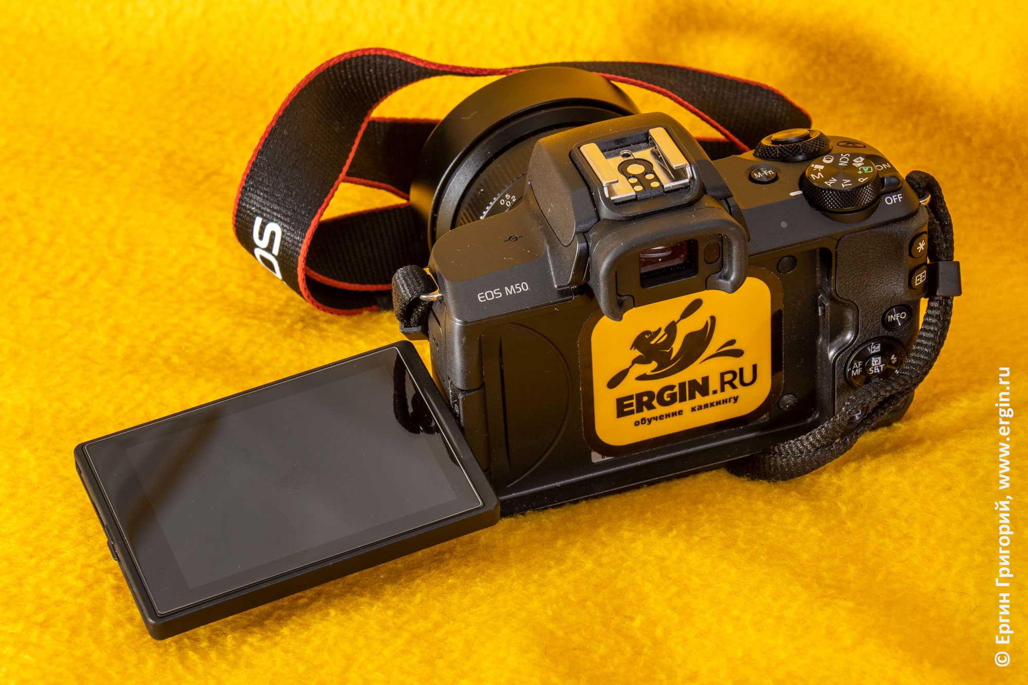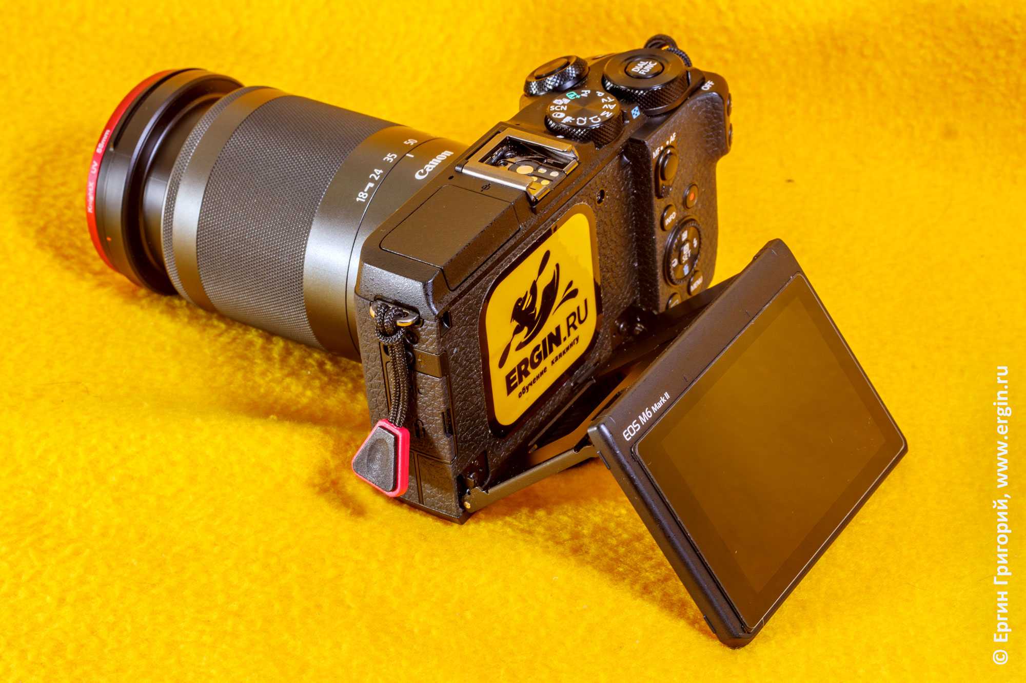 А у Canon EOS EOS M6 Mark 2 только приоткрывается вверх-вниз и отдаляется от фотоаппарата: