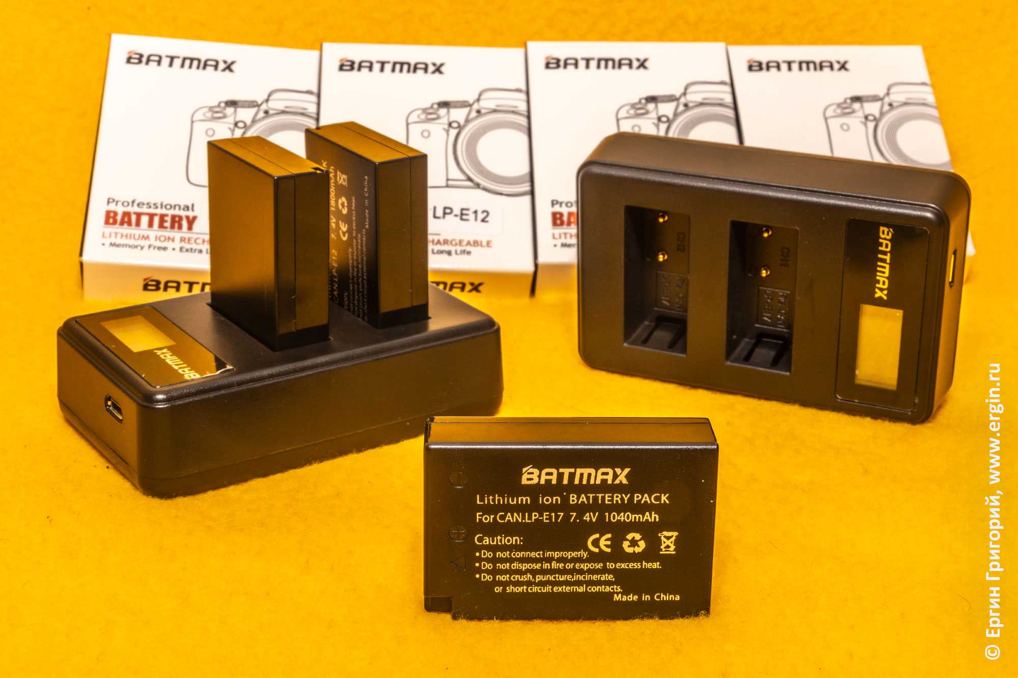 Canon LP-E17 7,5 Wh, 42 г против 7,7 Wh у Batmax — 36 г на весах.