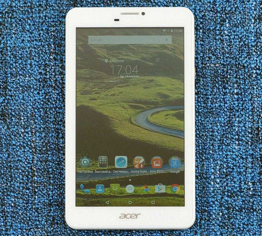 Что касается конкретно модели Acer Iconia Talk 7, то здесь дисплей выдаёт неплохую картинку с немного холодными оттенками, оптимальной яркостью, которая, впрочем, не даст почитать при ярком свете, но это проблема многих планшетов. Ещё видна пикселизация, но только при тщательном рассмотрении экрана вблизи, зато есть датчик автоматической регуляции яркости.