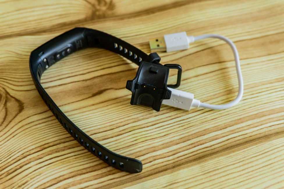 В комплекте с браслетом поставляется небольшой кабель USB—Micro-USB и зарядный элемент. Последний здесь такой же, как у предыдущих поколений — присоединяется с тыльной стороны так, чтобы совпали контакты, а затем к нему подключаем кабель Micro-USB.