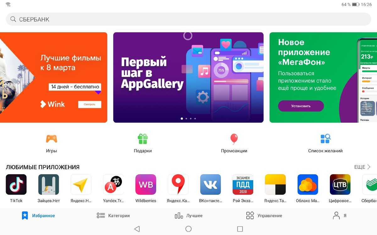 Ассортимент AppGallery сейчас активно пополняется. Практически каждый день туда добавляются десятки приложений. Сегодня в нём уже много популярных программ: почти весь набор от «Яндекса» и Mail.ru, «ВКонтакте», «Одноклассники», TikTok, приложения некоторых российских банков — Сбербанка, Почта Банка, Тинькофф, а вот Альфа-Банка и ВТБ нет. Из мессенджеров есть только Viber. Telegram пока не желает выпускать своё приложение, а WhatsApp – бойкотирует (американцам нельзя). Примечательно, что в AppGallery есть Госуслуги.