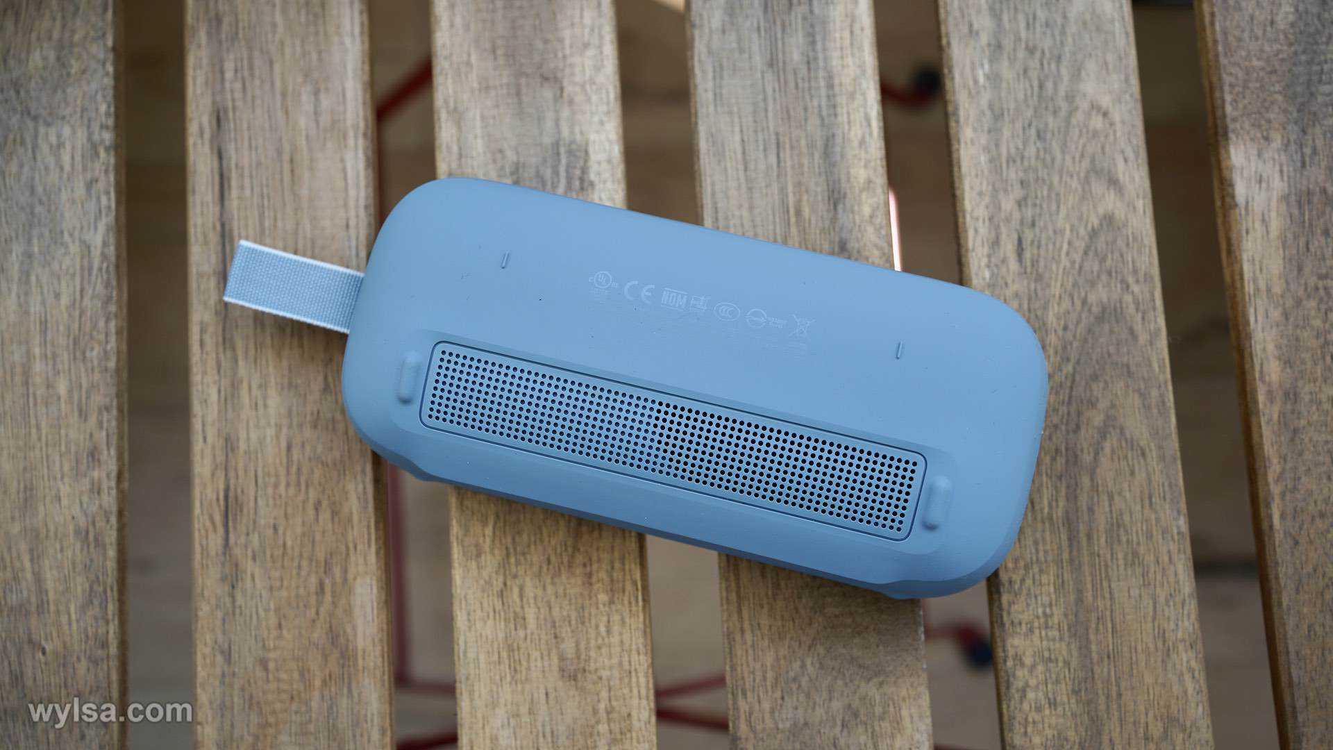 Нижняя часть корпуса сделана целиком из резины, у этого есть две причины. Во-первых, чтобы Flex не скользила. Во-вторых, у колоночки есть серьёзная защита от воды, и материал призван это подчеркнуть.