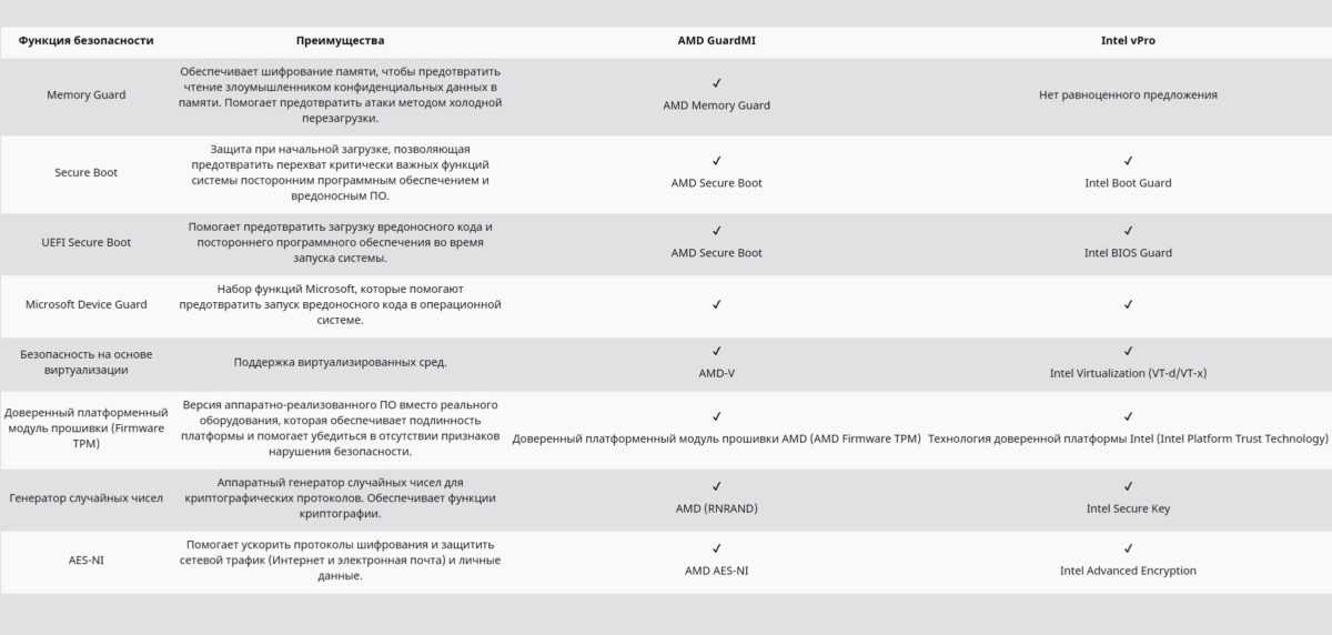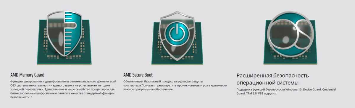 Чем отличается Ryzen 5 PRO от Ryzen 5? В основном, корпоративными фишками. Pro-версии процессоров, как десктопных, так и встроенных, рассчитаны на бизнес-сегмент, и облагорожены всяческими защитами против взлома. Включая Secure Boot, TrustZone, fTPM 2.0 (firmware-based Trusted Platform Modules), Transparent Secure Memory Encryption или TSME, а также защиту контента и менеджмент DASH.