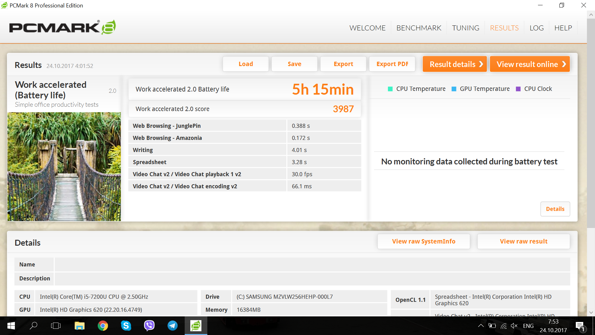 Чтобы определить реальную производительность, мы даем ноутбуку задачу преобразовать видео 4K в разрешение 1080p и скопировать мультимедийный файл размером 4,97 ГБ. Наш реальный графический тест — это тест Dirt 3 со средними настройками и разрешением 1080p.