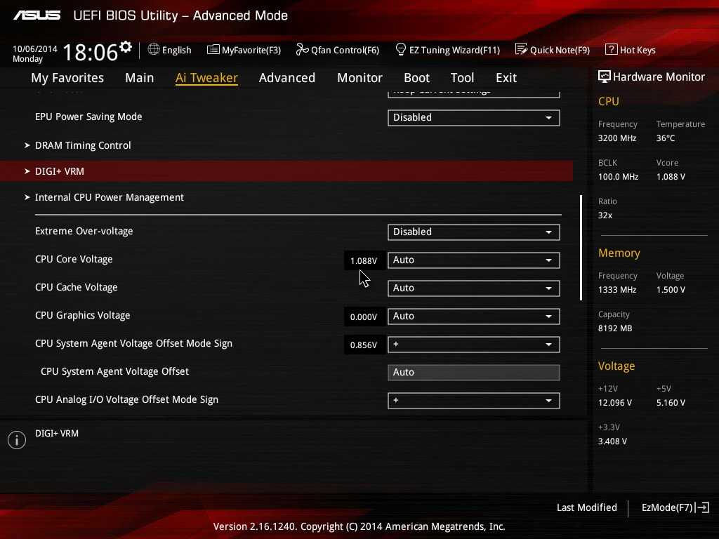 В разделе Ai Tweaker собраны все настройки для разгона процессора и настройки оперативной памяти, начиная от изменения вольтажа и заканчивая выставлением таймингов в работе оперативной памяти.