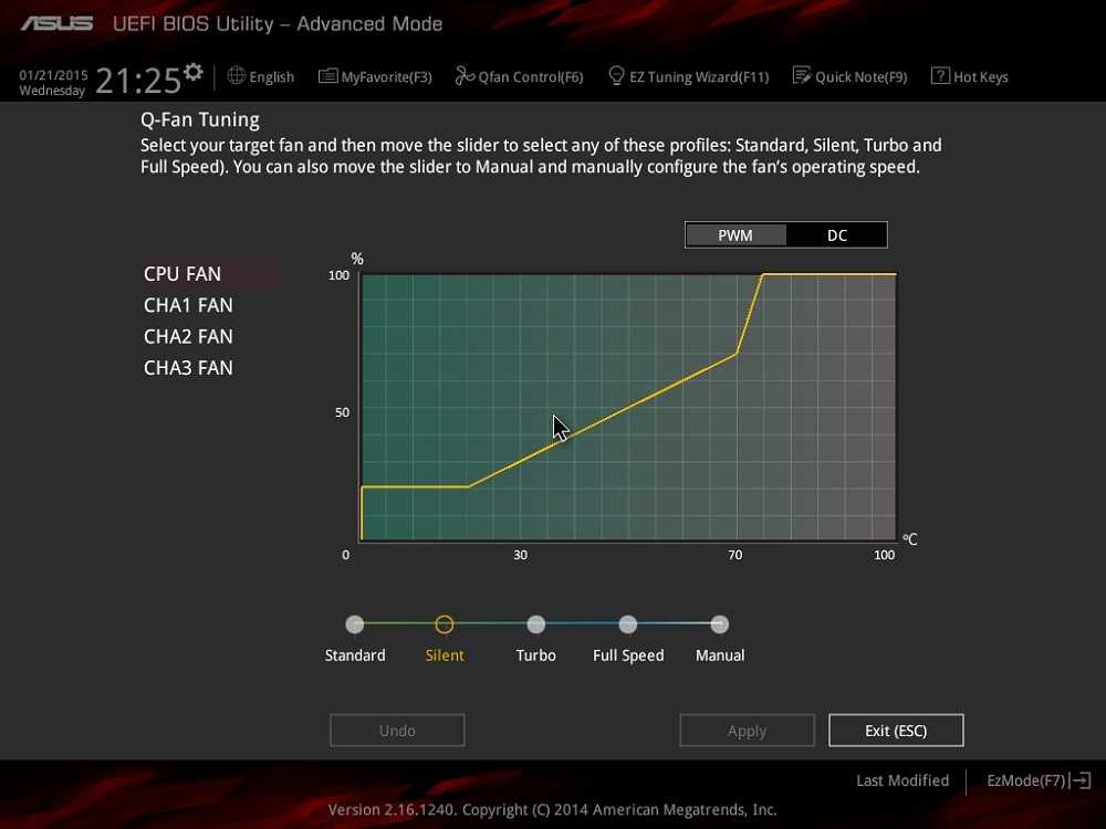 Fan Expert 3 – регулировка работы подключенных вентиляторов, можно настроить вручную или выбрать из готовых вариантов (тихий/стандартный/турбо/полная скорость).