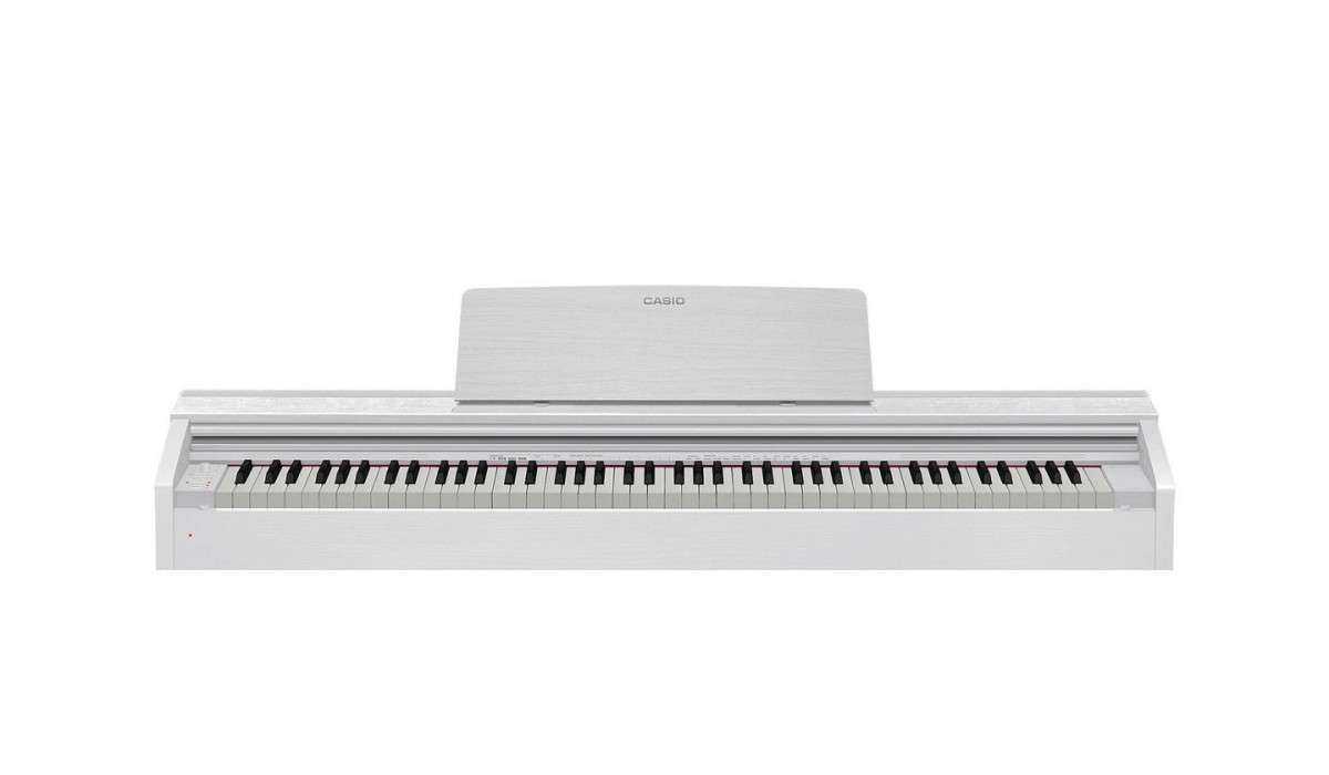 Цифровое фортепиано Casio Privia PX-870WE поддерживает технологию AiR Sound, которая дает возможность получить многомерный звук, и оснащено мощной акустической системой. Цифровое пианино отличается наличием симуляции акустических эффектов, а также набором цифровых эффектов, что наряду с открывающейся верхней крышкой позволит демонстрировать уникальные нюансы совершенного звучания музыкальных композиций. Модель предусматривает наличие 88 клавиш и выполнена в белом корпусе. Casio Privia PX-870WE поддерживает 19 тембров, 256 позиций полифонии и обладает мощностью общей 40 Вт. Особенность фортепиано в возможности подключения USB-накопителей и совместимости с мобильными устройствами. Вы сможете осуществлять запись музыки на носители или передавать их на свои смартфоны. Это позволит достичь комфорта во время работы с цифровым пианино. USB-порт позволит подключать компьютеры. Если вы еще не знаете, какое выбрать цифровое пианино для музыкальной школы, то мы советуем присмотреться к данной модели.
