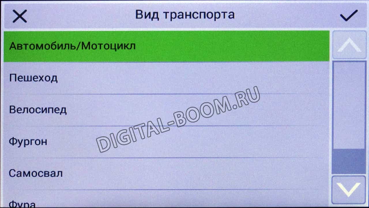 Очень важный момент, что карты Навител понимают, где может проехать автомобиль, где может проехать велосипедист и где может пройти человек. Переключение этих режимов можно найти в настройках в пункте «Вид транспорта».