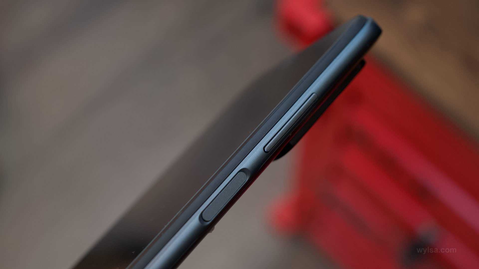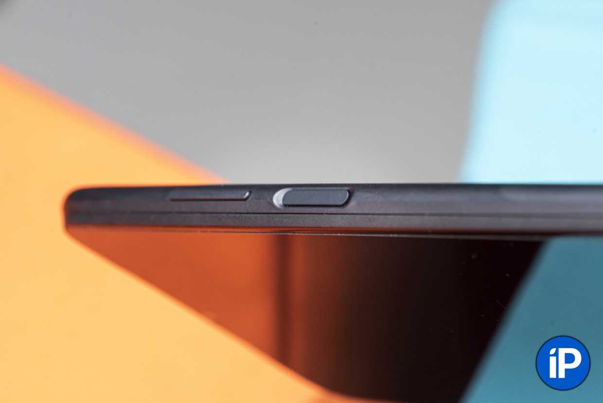 Корпус полностью выполнен из пластика, все органы управления расположены на правом боку. Вверху находится клавиша громкости, под ней кнопка питания. В неё же вписан сканер отпечатков, который срабатывает быстро и без ошибок. Пользоваться им удобнее, чем в том же Redmi 9, где сканер располагался под камерами.