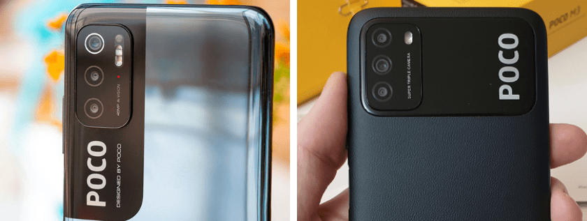 POCO M3 Pro (справа) и POCO M3 (слева). Задние панели.