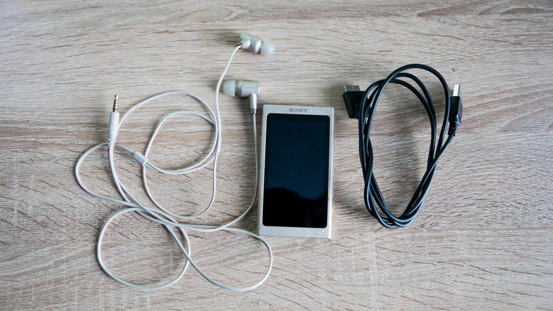 В продаже доступно 2 модели Sony NW-A45HN (с наушниками Sony MDR-NW750N) и Sony NW-A45 (без наушников). Помимо самого плеера и наушников (опционально), идет фирменный кабель для зарядки и передачи файлов. Странное решение использовать собственный кабель, вместо стандартных mini/micro USB.