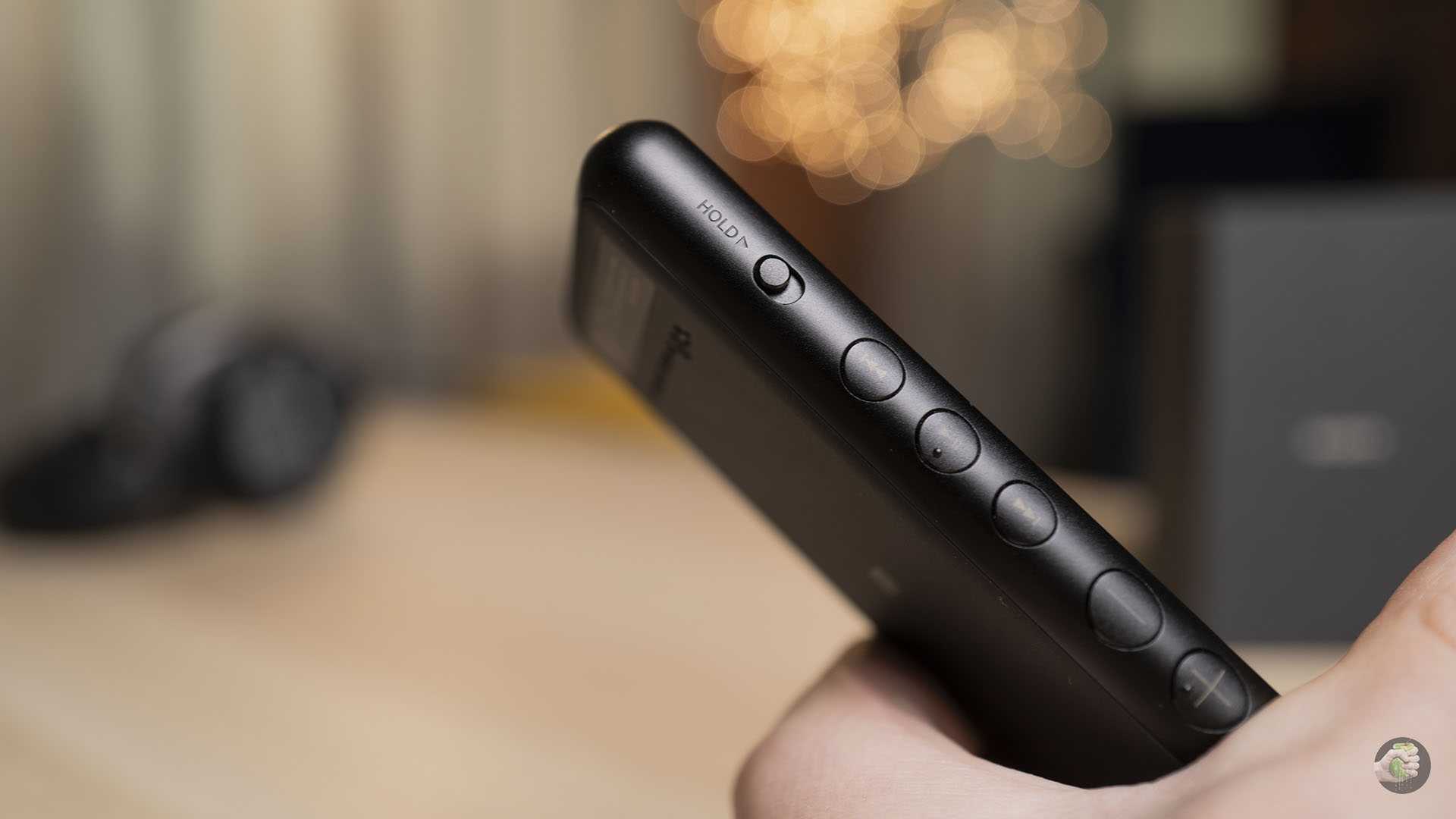 Управлять Walkman NW-A35 одной рукой достаточно комфортно, причем вынимать из кармана плеер не обязательно: его боковые кнопки хорошо ощущаются на ощупь. В целом управление настолько удобное, что пользователь сможет свободно контролировать громкость и листать треки вслепую уже через день-два активного использования.