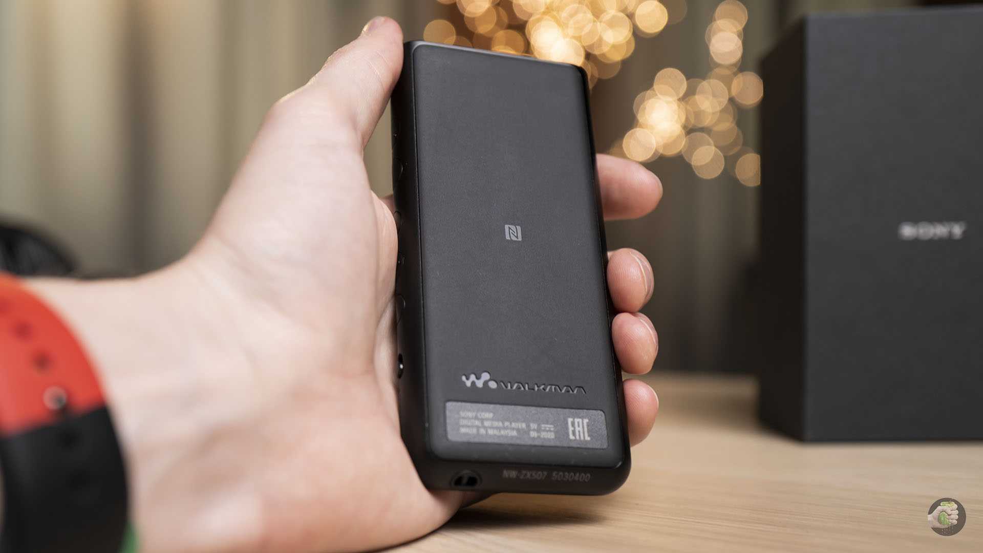 Задняя часть будто бы прорезиненная. Благодаря этому материалу, достаточно большому весу и эргономике плеер хорошо лежит в руке.