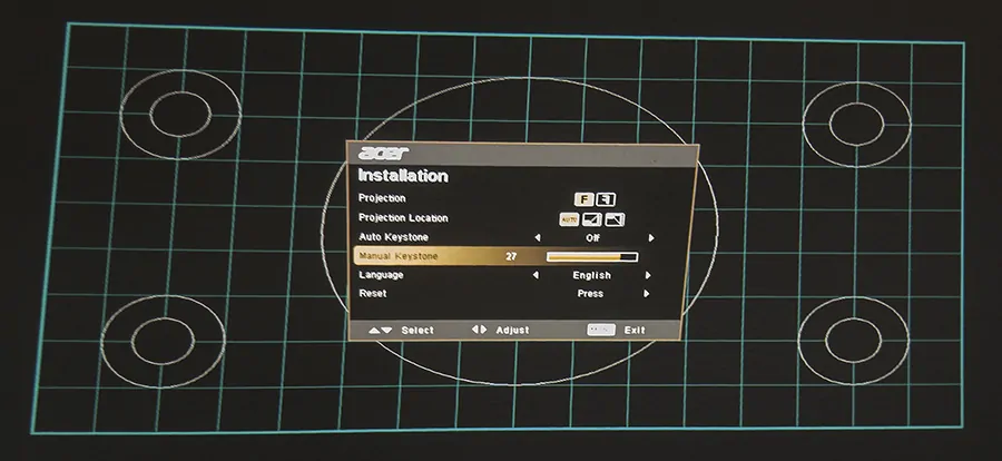 Есть два варианта коррекции трапецеидальных искажений: вертикальная и горизонтальная. Итак, начните с определения, с какой из них вам, скорее всего, придется поиграть. Как уже говорилось выше, сложно испортить установку проектора на центральной линии экрана, но, возможно, у вас есть детектор дыма или какая-либо другая потолочная функция, блокирующая правое пятно центральной линии.