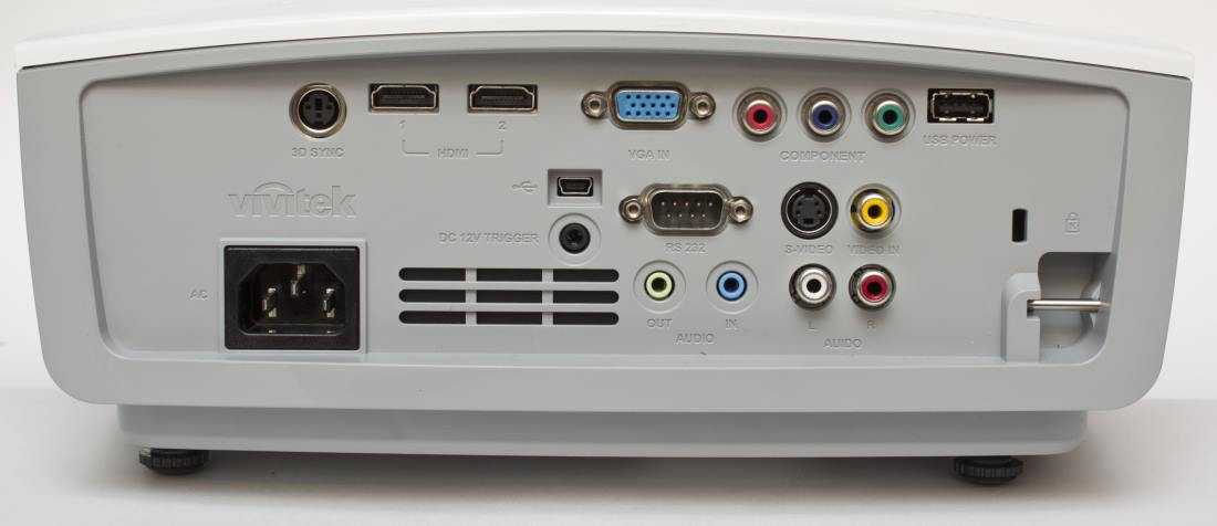 Все гнезда расположены на задней панели. Набор разъемов позволяет вписать проектор в домашнюю систему любой стоимости и законектить его с техникой любого вида и поколения.