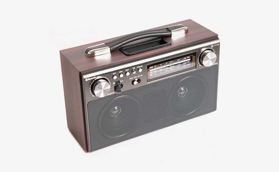 Плюсы: ретро радиоприемник своим дизайном отсылает пользователя к 70-м или 80-м годам, когда транзистор был практически в каждом доме и представлял иногда практически единственное средство получения информации. По отзывам пользователей сигнал ловит очень хорошо, работает в диапазоне частот FM, УКВ, СВ и КВ. Поиск станции производится привычным способом – крутилка в правой части корпуса. Находить нужную волну можно не только «на слух», но и используя старую, дедовскую шкалу с разметкой.