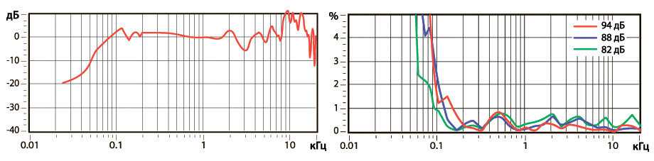 100 Гц — 20 кГц, 94/88/82 дБ: 0,41/0,43/0,48%