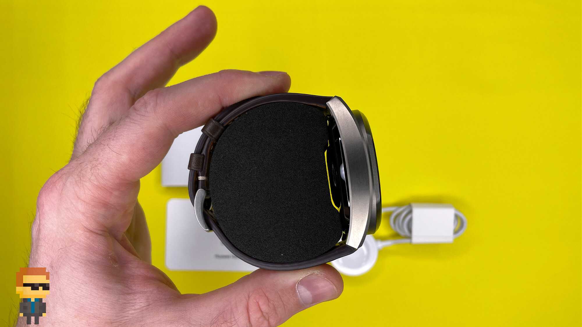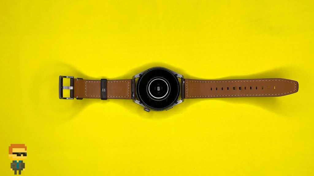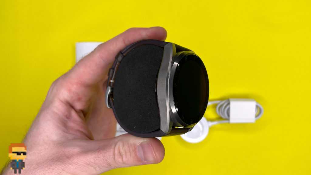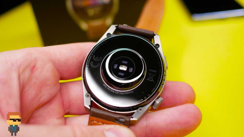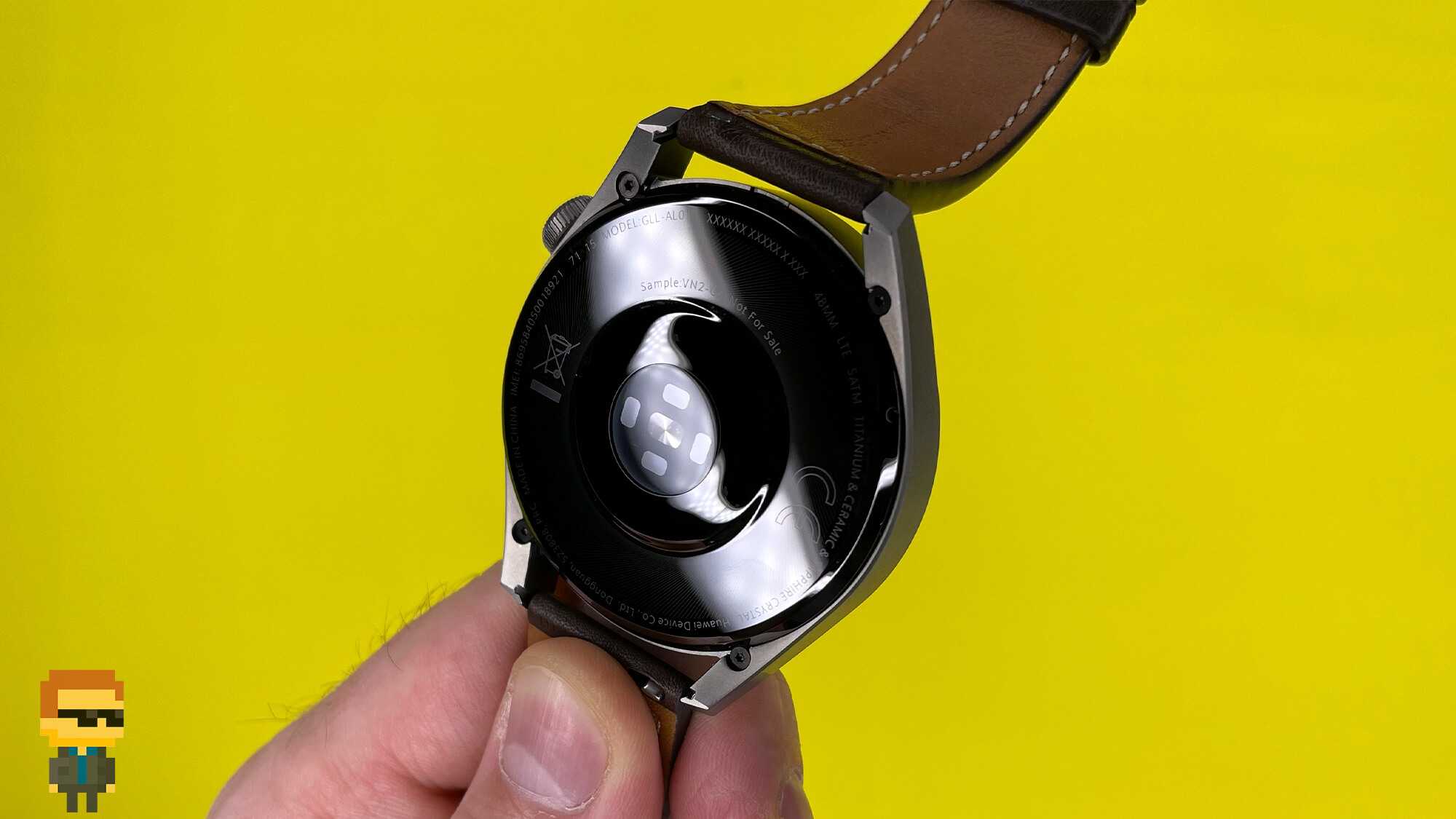 Корпус часов изготовлен из прочного металла — титана. Внутренняя поверхность соприкасается с кожей запястья. Приятное и комфортное благодаря керамическому покрытию. Не создает дискомфорта при ношении, поскольку какие-либо заострения или углы отсутствуют. Здесь находится комплекс из пяти датчиков: 1 в центре и 4 вокруг него. Сенсоры защищены массивным сапфировым стеклом с жироотталкивающим покрытием.