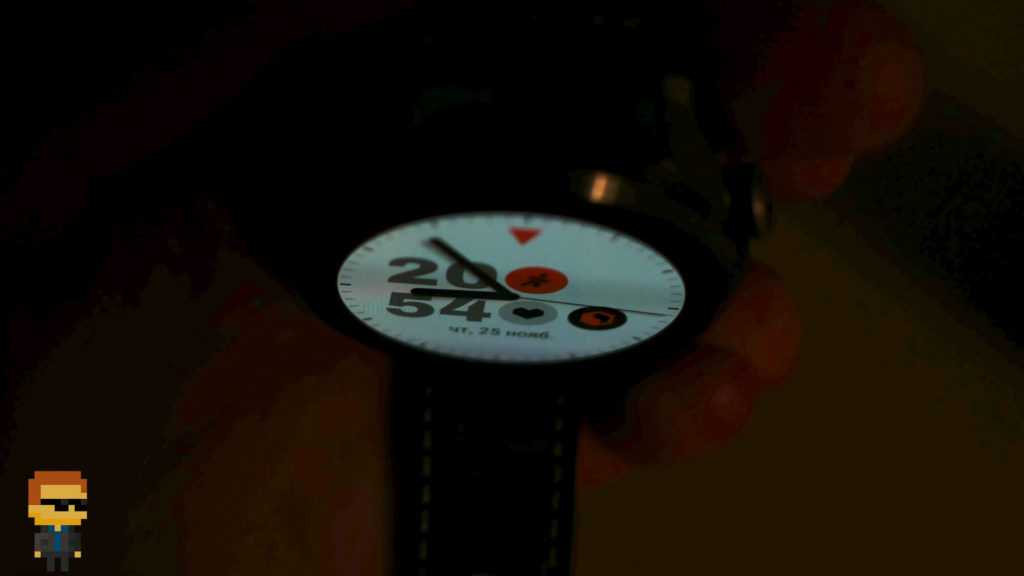 В роли циферблата выступает покрытый прочным сапфировым стеклом 1,43″ дисплей. Разрешение 466 на 466 пикселей соответствует плотности в 326 dpi. При такой плотности пикселизация незаметна даже если «упереться» глазами в экран.