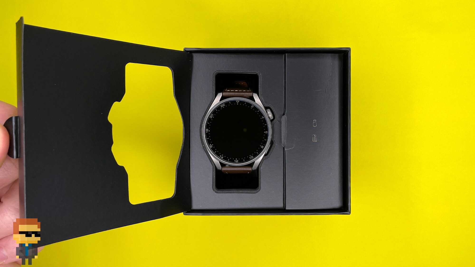 Часы готовы к использованию из коробки, поскольку кожаный ремешок надет сразу.