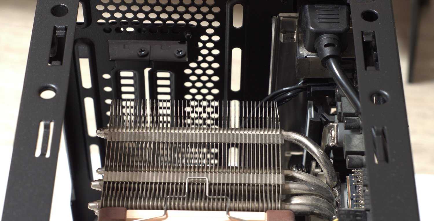 Отметим удобство подключения кабелей за счет снятия верхней крышки. Иначе подлезть с дополнительным питанием при установленном кулере было бы проблематично.