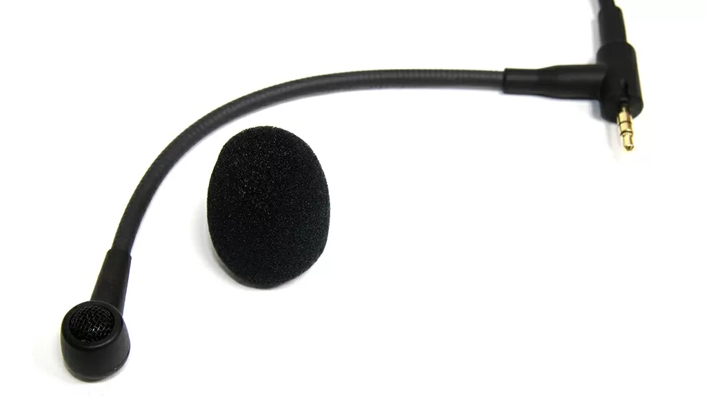 Электретный микрофон встроен в съемный кабель, а не в гарнитуру. Кабель подключается к 3,5-миллиметровому порту в нижней части левой чашки, а микрофон располагается на гибкой металлической штанге, которая простирается от основания разъема.