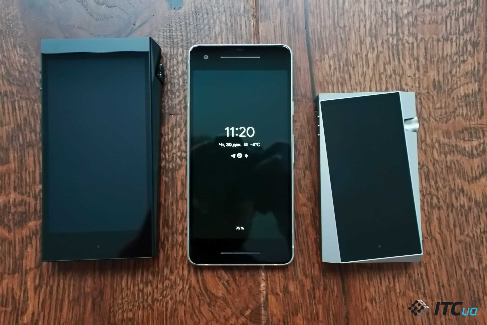 На фото ниже можно сравнить его размеры с младшим актуальным плеером бренда Astell&Kern SR25 и Google Pixel 2.