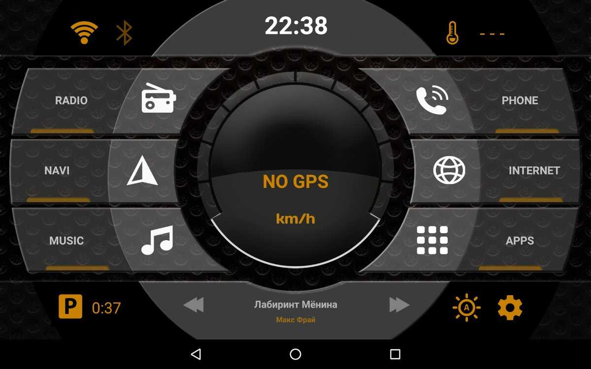 Но, на мой взгляд, наиболее гармонично вписывается в интерьер планшет с запущенным Car Launcher AG. Настраиваемые кнопки для радио, музыкального плеера, навигации, браузера. Показывает скорость и время стоянки. Отображает погоду, статус Wi-Fi и Bluetooth, управление текущей музыкой и настройки яркости.