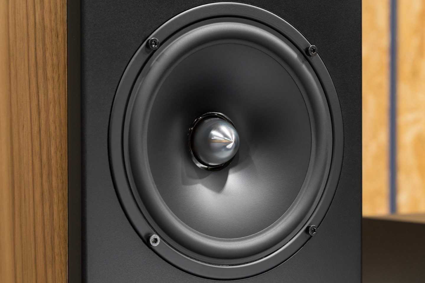 Колонки оснащены двумя излучателями Wavecor: 168-мм среднечастотником с глянцевым диффузором из пропитанной целлюлозы на резиновом подвесе и шелковым 25-мм твитером с демпфирующей пропиткой, помещенным в большой рупор.