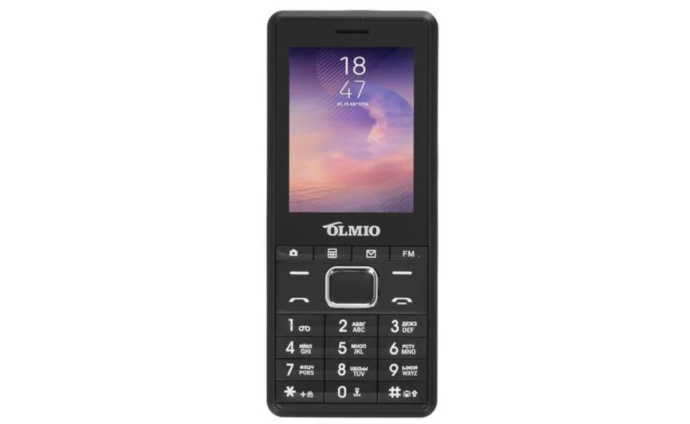 Открывает наш обзор кнопочный мобильный телефон Olmio C27, который наделен всем необходимым для обеспечения стабильной мобильной связи и быстрого доступа к звонкам в нужный момент. В телефоне установлен цветной 2.31-дюймовый дисплей и клавиатура, оборудованная приятной и яркой подсветкой символов для отчетливой видимости. Слоты для двух SIM-карт позволяют выбирать тарифы операторов связи. В оснащение телефона входят камера на тыловой панели, FM-радио, кнопка SOS, фонарик. Пластиковый корпус устойчив к повреждениям, а благодаря обтекаемой форме и компактным размерам устройство удобно лежит в руке. За длительное время работы без подзарядки отвечает аккумуляторная батарея на 1000 мА/ч.