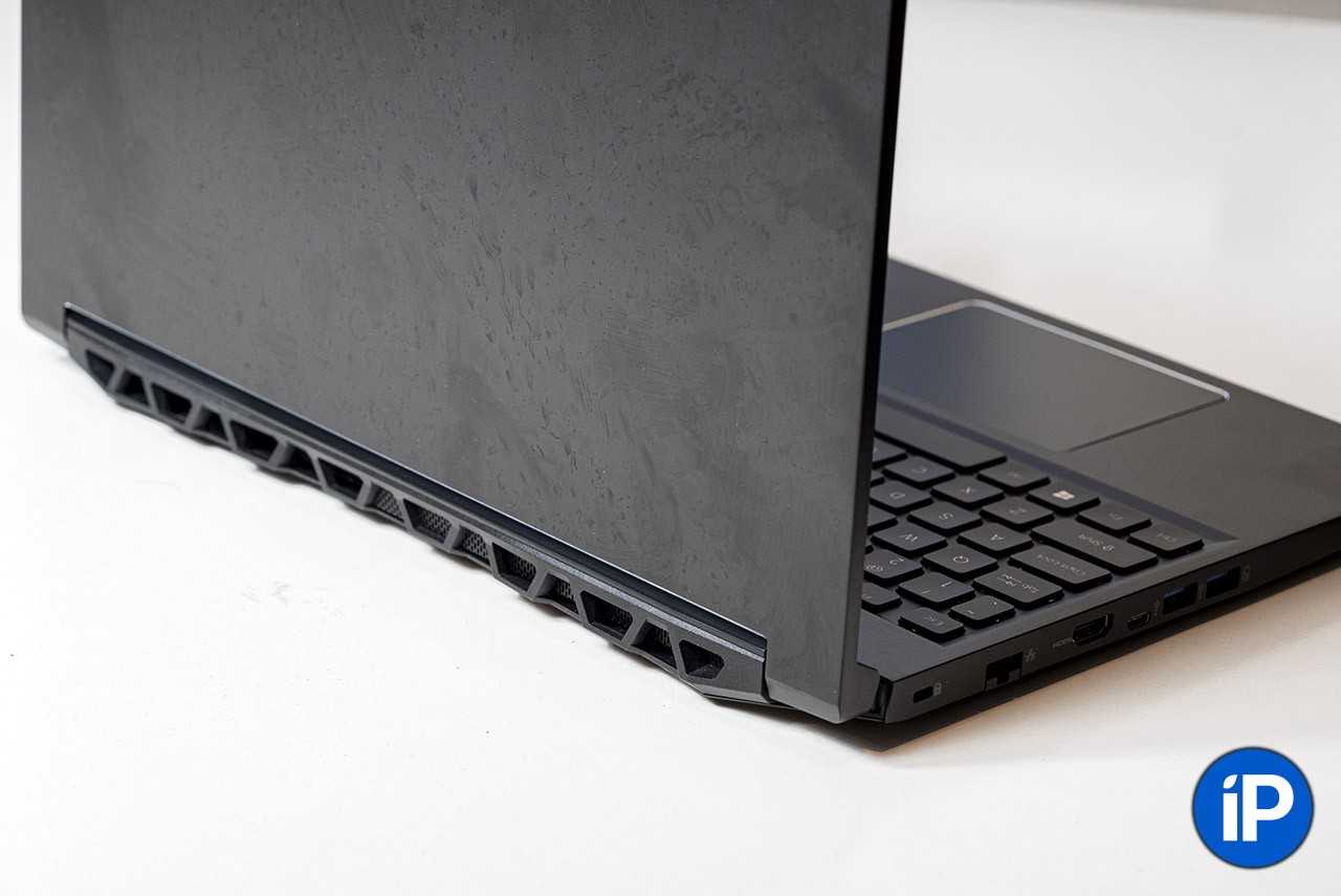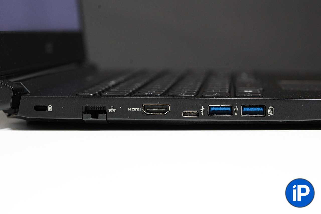 Набор разъёмов — почти стандартный. Один USB 2.0, один USB Type-C 10Gbps, два USB Type-A 5Gbps, один из которых умеет отдавать заряд при выключенном ноутбуке, а также HDMI 2.0.