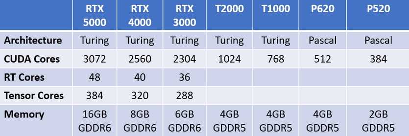 Сравнение профессиональных видеокарт Nvidia для ноутбуков