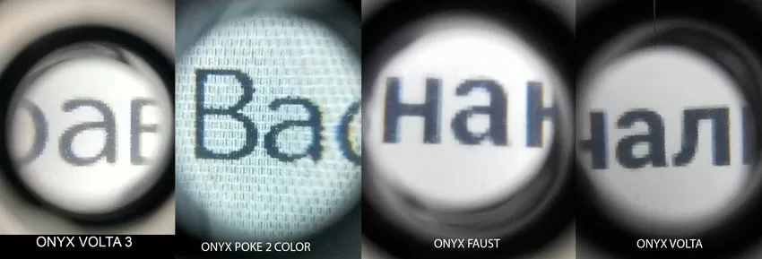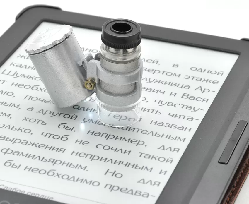Мне очень понравилась скорость обновления экрана, и это не удивительно, ведь разрешение 6-дюймового экрана составляет всего 758×1024 точки. Давайте сравним качество отображения текста, используя микроскоп.