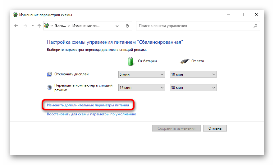 Способ 1: Изменение параметров электропитания