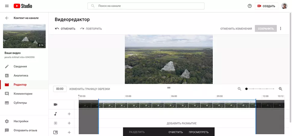 Скорректируйте продолжительность видео во встроенном редакторе Ютуба