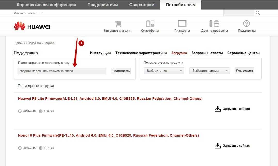 Аналогичная страница располагается на сайте Honor. Пользователю нужно перейти на страницу, выбрать свою модель и обратиться к списку доступных версий прошивки.