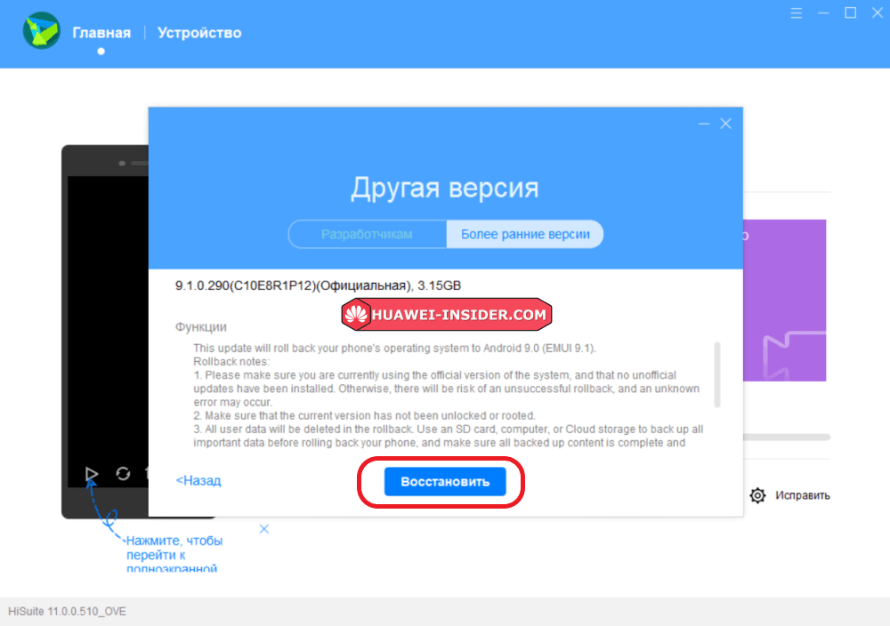 Как выполнить возврат на предыдущую версию прошивки Хонор и Хуавей