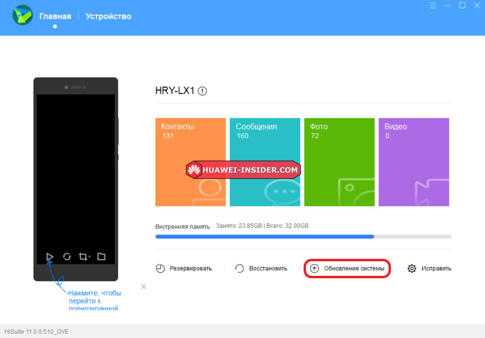 - дополнительно понадобиться скачать программу HiSuite для прошивки телефона и установки нужной версии EMUI.